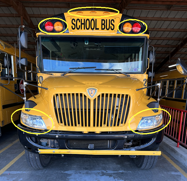 - Inspect all lights on the front of the bus.