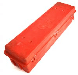 “In this red box behind the driver’s seat are three red reflective triangles. Attached to the floor below it is a pry bar. I would also inspect that the securely mounted fire extinguisher is properly charged. There are no spare fuses on board but they would be stored here if there were.”
